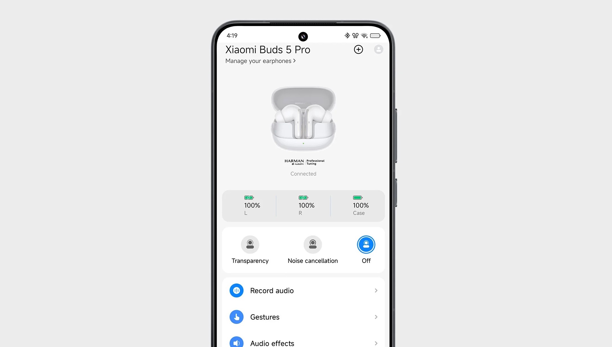 Xiaomi Buds 5 Pro интеллектуально определяет шум окружающей среды и автоматически регулирует громкость. Данную функцию нужно подключить в приложении Xiaomi Earbuds.